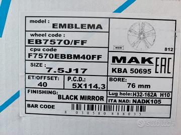 Codice ricambio: 7.5Jx17 ET40 5x114.3 CB76