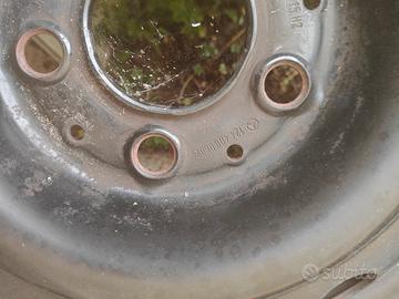 Vendo 4 cerchi in ferro Mercedes 5 fori, ogni cerchio presenta normali segni di usura ma una buona condizione generale.