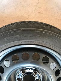 Cerchi completi con gomme da neve usate, completi di sensori pressione e calotte copri bulloni, erano usate su una Mercedes classe A (w176).