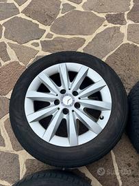 Vendo cerchi originali Mercedes classe A w176, ben tenuti come da foto, raggio 16. Montano gomme invernali 205/50 r16 consumate, non le conteggio nel prezzo. Scambio a mano, non spedisco. Vendo solo in blocco tutti e 4 i cerchi.