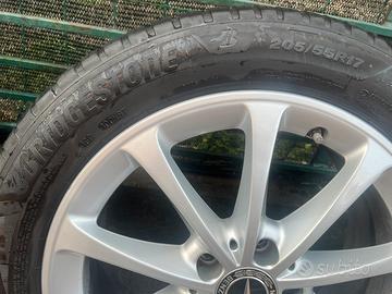 Vendo cerchi Mercedes 17 con gomme bridgerstone quattro stagioni 205 55 17 80% compresi di valvola controllo pressione