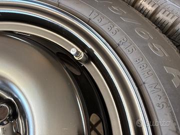 CERCHI IN FERRO + 175/65/15 PIRELLI SNOWCONTROLWINTER 210 USATE 90% BATTISTRADA RIMANENTE + SENSORI DI PRESSIONE TPMS.