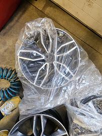 Cerchi usati con qualche segno ma assolutamente integri e non piegati, vendo per passaggio ai 19" sono compatibili con i sensori di pressione (non installati) i cerchi hanno 3 anni di vita e 57.000 km percorsi e sono completi di bulloneria, tappi e adattatori. Sono disponibile a inviare altre foto