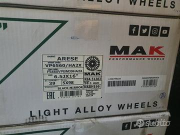 4 cerchi Nuovi 16 Mak Italia modello Arese Lista K attacco 5 x 98 Fiat 500 L Tipo Doblo . Possibilità di montaggio . Possibilità di spedizione con corriere espresso BRT in contrassegno con 30euro in piu