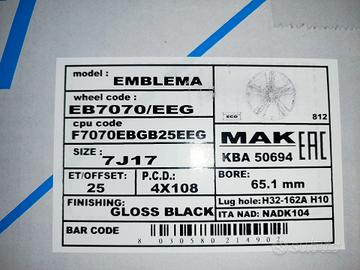 Codice ricambio: 7Jx17 ET25 4x108 CB65.1