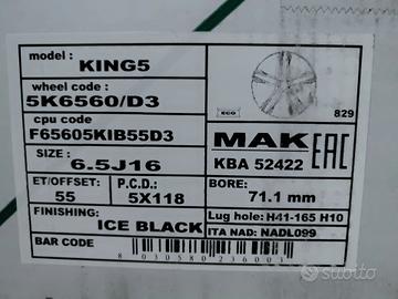 4 Cerchi in lega Nuovi Da 16" OMOLOGATI NAD, RINFORZATI