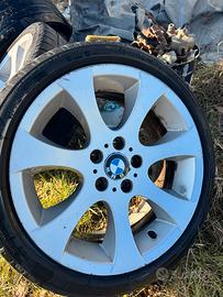 4 Cerchi originali bmw 5x120 r18 con canale differenziato posteriore 8 1/2 anteriore 8 con gomme bridgestone potenza sport posteriori finite ancheriori 50% in misura 225 40 r18 segnati come in foto non ci sono crepe ne saldature