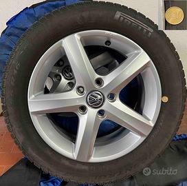 Vendo set di 4 cerchi in lega VW Aspen originali da 16” (6Jx16 H2 ET48) per Golf 7, dotati di gomme invernali Pirelli Winter Snow Control S3, misura 205 55 R16 (91H). (DOT XA BK N238 2014)