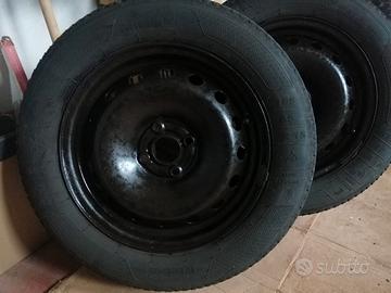 Cerchi in ferro ET43 R15, diametro centraggio 56.6mm, 4x fori interasse 100mm. Pneumatici inv. 185/65 R15 montati da sostituire. Prezzo per 4 ruote: 60€. No spedizione,solo ritiro, in loco o zona Rovereto,. TN