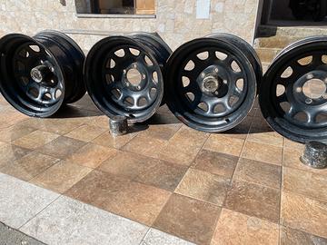 Cerchi Rugged Ridge misura 15x8,5 et 20 , adatti a Jeep Wrangler Tj, Yj Cherokee Xj e Kj, Grand Cherokee Zj. Hanno normali segni di usura da fuoristrada ma sono dritti. Non spedisco dato il peso notevole.