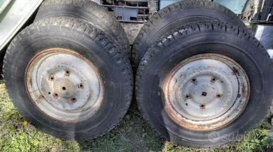 Cerchi con Pneumatici nuovi da neve d'Epoca Marangoni, una coppia 5 fori con centrale tondo, una coppia 5 fori con centrale quadrato. Vernice grigio originale con lieve ruggine non compromettente alla riverniciatura. cedesi in stok a questa richiesta.