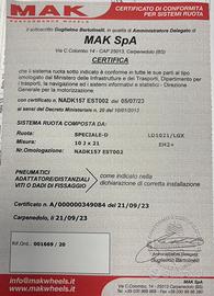 Vendo 4 cerchi MAK ( due 9x21 e due 10x21) neri + 4 gomme BRIDGESTONE POTENZA (due 255/40 R21 e due 295/35 R21) estive al 70% di battistrada. PER MASERATI GRECALE e LEVANTE. Tutto a € 900 + spedizione.