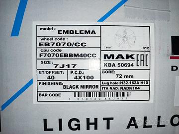 Codice ricambio: 7Jx17 ET40 4x100 CB72