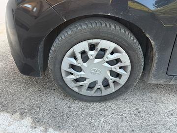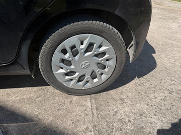 Vendo cerchi e copricerchi per Toyota Aygo. Le condizioni sono come da foto e le gomme sono da cambiare. Misura 15 pollici. Non spedisco.
