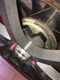 Insieme ai cerchi saranno dati distanziali da 20mm fatti su misura con disegno interno del cerchio volk come si può vedere dalle immagini (non sono in commercio sono stati realizzati) e set dadi Rays Rossi con chiave antifurto. Preferibile ritiro a mano. Spedizione da concordare.