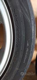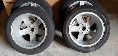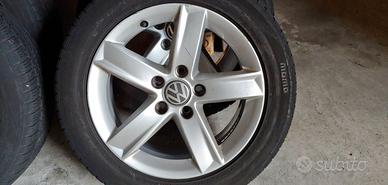 4 cerchi completi di pneumatici, per auto del gruppo Volkswagen quindi adatti anche per Audi, Skoda, Seat, Cupra, ecc.. misura: larghezza 7J , diametro 16 pollici , offset 42 , attacco 5 fori interasse 112mm. montano pneumatici Momo All Season Run M4 (M+S) misura 205/55 R16 94V due gomme sono buone, altre due sono consumate nella parte interna, sono comunque utilizzabili, i cerchi sono dritti e puliti ma hanno qualche segno, andavano bene e non vibravano , li vendo perché ho cambiato auto, erano montati su Golf 6.