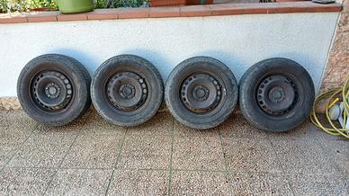 Vendo come da fotografie: - 4 cerchi in acciaio 15" fori 5x112. - 4 copricerchi in plastica originali VW. - 4 penumatici Fireston winterhawk 3 misura 195/65 R15 a fine vita. 4 mm di battistrada residuo. Da ritirare a mano in Campogalliano (Mo)