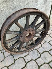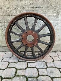 Vendo cerchio con raggiatura in legno da restaurare per auto d’epoca, ottimo anche come ornamento.