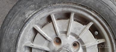 Vendo cerchio in lega cromodora attacco alfa romeo Giulia/duetto/gt junior... 4x108, diametro 14 canale da 5 1/2, segni leggeri di marciapiede ma usabile anche così. Pneumatico michelin 165x14 con camera vecchio.