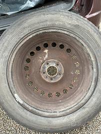 Come da foto, vendo cerchio in ferro da 16 a 5 fori con gomma montata da carico.