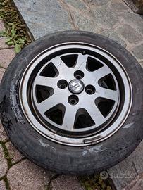 4 Cerchi in lega della vecchia lancia delta con pneumatici in discrete condizioni 165/65/R14