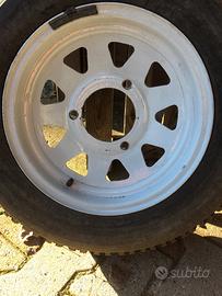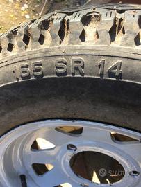 vendo 4 cerchi auto a 3 fori con gomme chiodate montate ancora buone usavo su aro ischiia. Misure in mm. Mozzo centrale diametro 113-Centro mozzo centrale centro foro bullone ruota 75-centro centro bulloni ruote 130. non spedisco