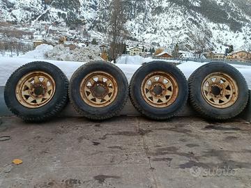 Vendesi N° 4 cerchioni con gomme termiche chiodate 205 R 16 2 gomme in buono stato e 2 gomme quasi a fine corsa. Adatte per fuoristrada Toyota Hilux, Mitsubishi, Nissan, Land Rover