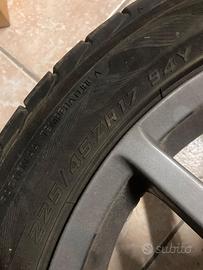 Vendo cerchi da 17'' color grigio antracite, completi di gomme estive Yokohama Advan Sport 225 - 45 R17 usate una sola stagione estiva.