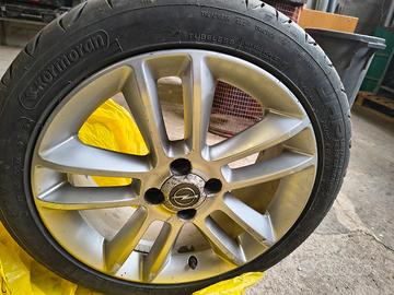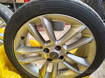 4 cerchioni da 17 per Opel corsa , con qualche graffio,come si vede in foto, complete di gomme 215/45/17 .... una coppia di gomme marchiate kormoran sono buone , l'altra coppia marchiate Barum sono da cambiare ..... dalle foto si capisce .
