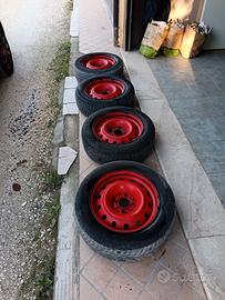 Vendo 4 cerchioni in ferro rossi Dimensioni Cerchioni 15 pollici 4 fori con interasse 110mm Diametro mozzo 65 mm In omaggio i pneumatici che vi sono montati
