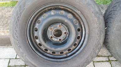Vendo 4 cerchioni in ferro montati su kia sportage anno 2017, 5 dadi e gomma 215/70/R16 compatibili con altre case automobilistiche; mai picchiati.