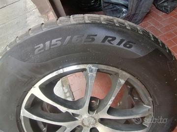 N.4 cerchioni in lega con gomme termiche al 50% con ruota di scorta con cerchio nuova. Misure 215/65 R16. Misure ruota di scorta 235/60 R16