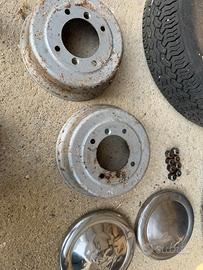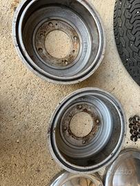 Cerchioni con coppe cromate, mozzi tamburi e viti originali mini minor credo prima o seconda serie.