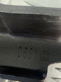 Dotazioni incluse: braccio cerniera in acciaio stampato, base con 2 asole regolabili, perno centrale con dado, staffa ancoraggio telaio, zona rinforzata stampata, marchiatura Mopar originale.