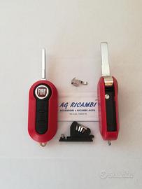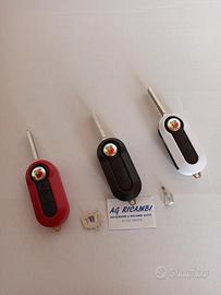 Chiave completa di Emblema Stemma , Tasti , Lama (spadino) vergine da intagliare , sportellino batteria e contatti metallici per Fiat 500 500c Abarth e 595