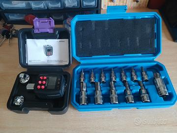 Adattatore Chiave Dinamometrica Digitale 1/2", 10-200Nm Chiave Dinamometrica con Alta Precisione ±1%, Preimpostata, Archivio Dati, Buzzer e Notifica LED, Adattatori da 1/4" 3/8" per Auto, Moto... in più do anche un set di chiavi a bussola...👍