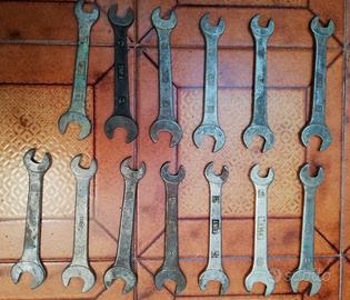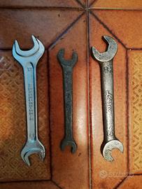 Come da titolo, vendo chiavi fisse trousse attrezzi Fiat per auto storiche d'epoca. Misure disponibili (tutte metriche): 27 singola; 22 - 19; 19 - 17; 17 - 13; 10 - 8. Pinza completamente in metallo Chiave Mercedes-benz 17 - 13 Lario 14 - 12 Le uniche misure disponibili sono quelle sopra indicate. Prezzi (per singola chiave): 25? la 27mm ; tutte le altre 15?. Pinza 15? chiavi Lancia non più disponibili Per maggiori informazioni contattatemi, spedizione in tutta Italia previo accordi, consegna a mano in Torino e dintorni.