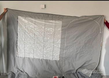 Vendo chiudi-veranda per camper Fiamma Electra M3 da 300 cm. Completa di parete frontale, due laterali e paleria originale. Usata poco e in ottime condizioni, tessuto integro senza strappi. Ideale per creare una stanza davanti al tendalino del camper.