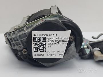 CINTURA DI SICUREZZA ANTERIORE DESTRA PEUGEOT 207 S. Wagon 2° Serie 96863757XX EP3C (09>)