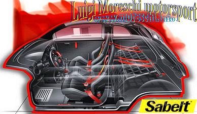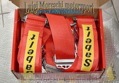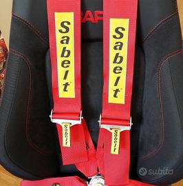Cintura di Sicurezza Sabelt a 4 punti con fibbia a rotazione racing; complete di moschettone e golfari.