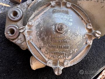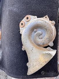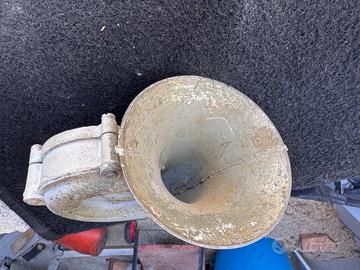 clacson d'epoca Magneti Marelli. Identificazione del pezzo • Produttore: Magneti Marelli, il leggendario fornitore italiano di componenti elettrici. "BREVETTATO": Indica che il design è protetto da brevetto. • "MADE IN ITALY": Conferma la produzione nazionale, tipica degli anni '50 e '60. • "8M": Si riferisce al modello specifico o alla tonalità (frequenza) del suono. Tipologia: È un clacson elettromagnetico a chiocciola. La parte rotonda contiene il diaframma che vibra, mentre la "tromba" a spirale serve ad amplificare e modulare il suono. Questo tipo di avvisatore acustico era montato su auto italiane di alto livello, come Ferrari, Alfa Romeo, Lancia o Maserati. Spesso venivano installati in coppia (uno con tono alto e uno con tono basso) per creare quel suono squillante e armonioso tipico delle auto sportive italiane di una volta. In ottime condizioni Per maggiori informazioni