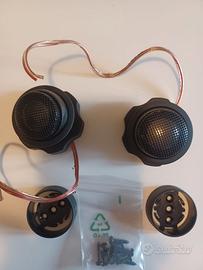 Modo di messa a ponte a 4/3/2 canali Potenza di uscita massima: 720 W (4 × 180 W a 4 ohm) Potenza di uscita continua: 360 W (4 × 90 W RMS a 4 ohm) Potenza di uscita a ponte: 2 × 260 W @ 0,05 % THD Potenza stereo a 2 ohm: 4 × 130 W @ 0,05 % THD Bass Extender: 0/+15 dB @ 45 Hz Frequenze crossover regolabili ed indipendenti per i canali anteriore/posteriore (HP/LP): 55 ~ 550 Hz o 550 ~ 5.500 Hz Ingresso livello di linea regolabile: da 200 mV fino a 6 V Ingressi ad alto livello, spinotti/cablaggi non disponibili (per uscite altoparlanti) Circuiterie di attivazione/disattivazione con silenziamento Connettori altoparlanti e alimentazione placcati in oro Dimensioni: 407 (L) ×165 (P) × 56 (A) mm Le frequenze crossover (HP/LP selezionabili) possono essere selezionate per gli altoparlanti anteriori (CH1/2) e per quelli posteriori (CH3/4 frequenze 55 Hz/110 Hz/240 Hz/330 Hz/550 Hz per gli altoparlanti anteriori, mentre quelli posteriori presentano anche l'opzione 550 Hz/1.100 Hz/2.400 Hz/3.300 Hz/5.500 Hz con la funzione X10). + coppia woofer polk audio mm 8002 8" (o + piccoli) magnete in ferrite. + coppia mid-high new 8 ohm coni da 54 mm con griglie magneti leggerissimi, dimensioni 91/85 (diagonale centro fori) x 35 mm profondità installazione. + coppia tweeter credo nuovi come in foto, jbl cupole puro titanio da 25 mm/1" con supporti montaggio.