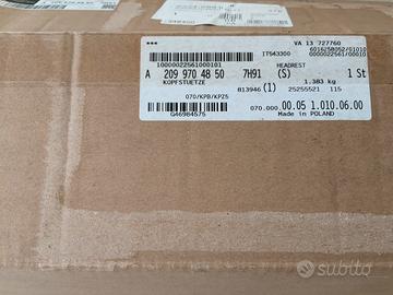Vendo coppia poggiatesta anteriori destro e sinistro Mercedes clk w209 colore grigio Tortora con sistema di apertura elettrico collegato airbag . Nella loro confezione originale come da fabbrica codice prodotto A2099704850 7h91 .