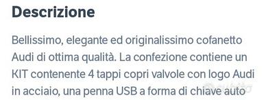 Cofanetto Audi Originale come da foto vendo per inutilizzo