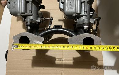 Collettore Aspirazione Abarth con due carburatori Weber 32 per Fiat 1100 103TV Callettore Aspirazione ABARTH mai montato completo di due carburatori WEBER 32IMPE7 e relativi leveraggi perfettamente funzionanti. “Collettori nuovi - Un carburatore nuovo ed uno perfettamente ricondizionaato”