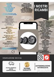Disponibili ricambi Cofano, Paraurti, Parafanghi, Fari, Calandra, Radiatori, Plastiche, Airbag, Meccanica, Porte anteriori, Porte posteriori, Ponte completo, Portellone posteriore, Stop posteriori, Specchietti retrovisori, scocca carcassa Siamo chiusi il sabato pomeriggio e domenica _______________ Spedizioni rapide in 24/48h Pagamento: Contanti alla consegna (contrassegno) Bonifico bancario paypal _______________ Per maggiori informazioni: 3470886683 - antonio #cmp5511d#