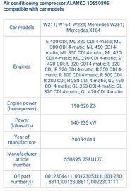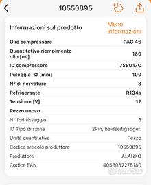 Compressore aria condizionata Alanko 10550895 nuovo imballato. R134a. Per Mercedes W211; W164; W221; W251; X164 E 420 CDI; ML 320 CDI 4-matic; ML 300 CDI 4-matic; ML 450 CDI 4-matic; ML 350 CDI 4-matic; ML 420 CDI 4-matic; ML 280 CDI 4-matic; S 420 CDI; S 320 CDI 4-matic; S 320 CDI; R 320 CDI 4-matic; R 350 CDI 4-matic; R 300 CDI 4-matic; R 300 CDI; R 280 CDI; R 280 CDI 4-matic; GL 450 CDI 4-matic; GL 350 CDI 4-matic; GL 320 CDI 4-matic; GL 420 CDI 4-matic OEM 0012304411 0012305311 0012308811 0022301111 001 230 8311 compatibile CS20378 DELPHI Compatibile con varie Mercedes (controllate).