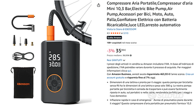 Questo compressore d'aria portatile è l'alleato perfetto per gonfiare gomme di auto, bici, moto o palloni. Ha una pressione massima di 10,3 bar e funziona con batteria ricaricabile, così puoi usarlo anche lontano dalla presa di corrente. È dotato di arresto automatico per evitare gonfiaggi eccessivi e ha una luce LED integrata, utile in caso di emergenze o utilizzi al buio. Compatto e leggero, è facile da trasportare e da riporre in auto o in garage.