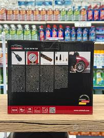 Il compressore per auto Einhell CC-AC 35/10 12V è un dispositivo potente e maneggevole, concepito specificatamente per l’impiego mobile e flessibile. In rapporto alle proprie dimensioni, dispone di una capacità di flusso elevata che raggiunge i 35 litri al minuto. Grazie al collegamento a 12 volt con la presa dell’accendisigari e al cavo di adduzione da 2,8 m, si possono realizzare rapidamente svariate operazioni che richiedono l’utilizzo di aria compressa, come per es. il gonfiaggio di pneumatici di auto, motociclette e biciclette o di palloni e materassini gonfiabili, ecc. velocemente e ovunque ci si trovi. Il manometro integrato consente di leggere la pressione dell’aria attuale da 0 a un massimo di 10 bar. Il condotto flessibile dell’aria è dotato di un attacco per valvola Schrader e i 4 adattatori supplementari in dotazione (adattatore per pneumatici, palloni gonfiabili, materassini gonfiabili e palle) consentono un uso versatile del compressore.