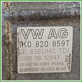 Compressore Clima AC Aria Condizionata Originale Usato DENSO VOLKSWAGEN PASSAT 36 1.4 TSI 2010 2014, Gole 6, Gas Refrigerante R134a 6SEU14C GE447190-5989 GE4471905989 1K0820859TX 1K0820859T 1K0820859T